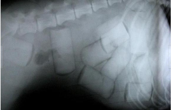 一只拉布拉多犬被送到欧洲之前,一个哥伦比亚兽医把毒品放入它的体内,图为拉布拉多犬的X光照片显示,其胃部和胃粘膜之间藏有许多小包装的可卡因。 (责任编辑:admin)
